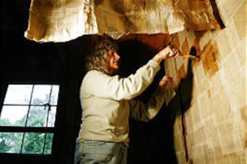 The Park Service hired Eileen Clancy, a paper conservator from Denver. For more than a month, she and Sanders slowly peeled off the scraps using Japanese Kozo paper made specifically for conservation. They worked in the dim, cramped cabin, moving at a rate of about a square foot each hour.