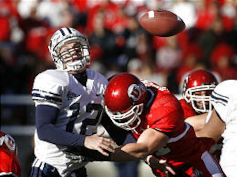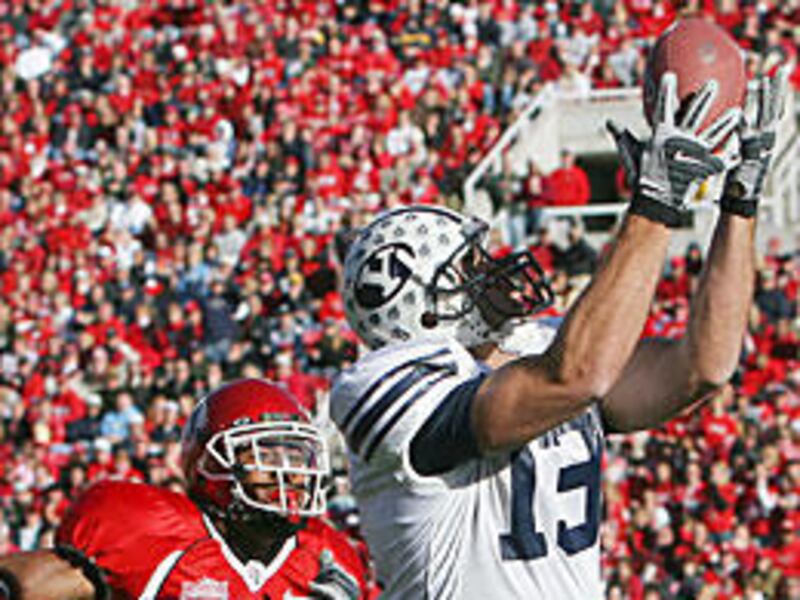 Cue the background music. Pan slowly away from the scene. This time, as he stood on the field at Rice-Eccles Stadium, tears welled up again as he spoke of BYU's 33-31 win over Utah on Saturday. One play, no time remaining and nothing at all on the line. Except, of course, whether he would go down in history as a glorified Kevin Feterik, or one of the better quarterbacks at a school famous for quarterbacks.