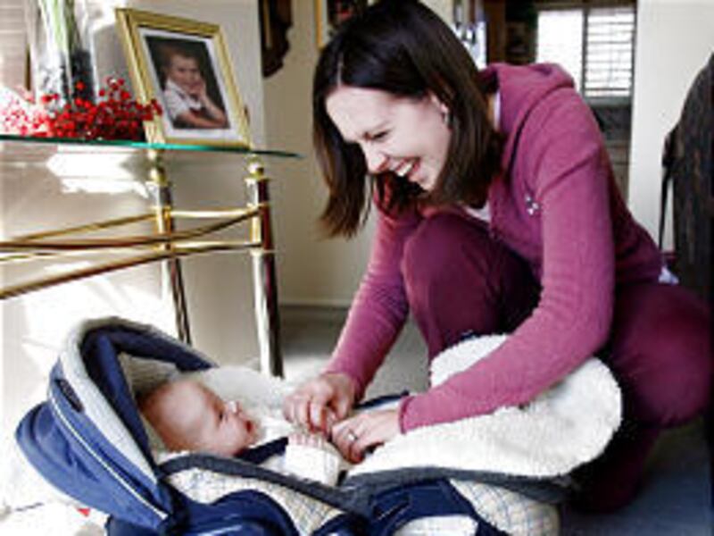 This time of year, says Evershed, a bunting bag makes a nice gift. The one she uses in the car seat with 4-month-old Will is a Bundle Me. The baby stays warm in the car without the need for a snowsuit and mittens. When the Evershed's oldest child, John, was a baby, he hated being stuffed inside a snowsuit, unable to bend his arms or legs. Bunting bags sell for around $25 to $50.