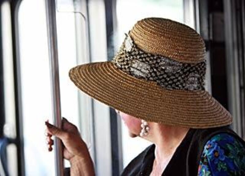 Once she's maneuvered the suitcase on the bus, she always sits in the seat behind the bus driver with a heavy plop, the suitcase resting between her legs. She wears a green, puffy coat and white tennis shoes.