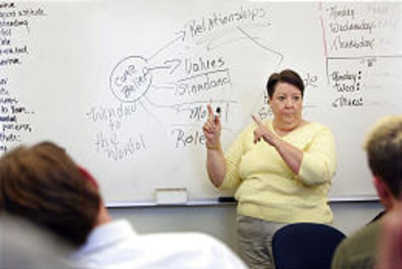 She asks the group to identify some of Ken's "thinking errors." Eyes shift to a poster on the wall. The students shout out words and phrases. "Rationalizing," "Silent Power," "Justification," "Intellectualizing."
