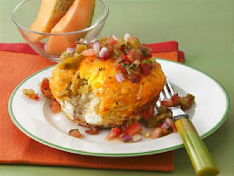 BREAKFAST BISCUIT CUPS WITH GREEN CHILI SALSA