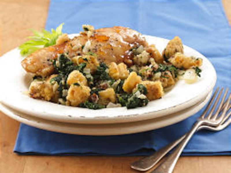 For Utah's altitude: Bake chicken 25 minutes. After adding stuffing to oven, bake stuffing and chicken 20-30 minutes. — Anna Ginsberg, Austin, Texas