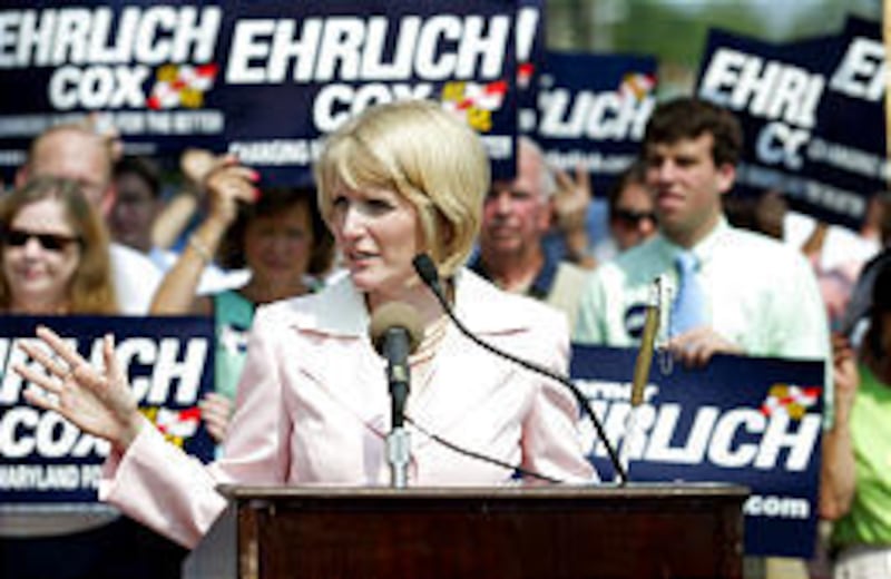 After Ehrlich introduced Cox as his running mate on June 29, most of the next day's news stories focused on her blindness, highlighting the pink suit she wore and white cane she carried during the announcement.