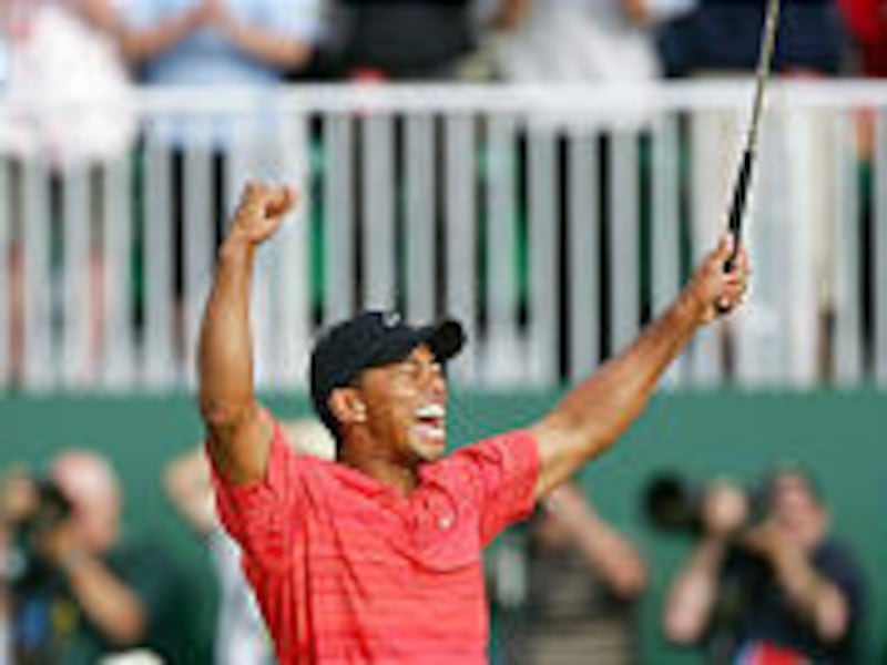 Els had a two-putt birdie on the par-5 fifth to join Woods at 13 under, but that didn't last long. Woods threaded an iron up the front of the fifth green to 25 feet, then raised his putter aloft in his left hand when the eagle putt fell.