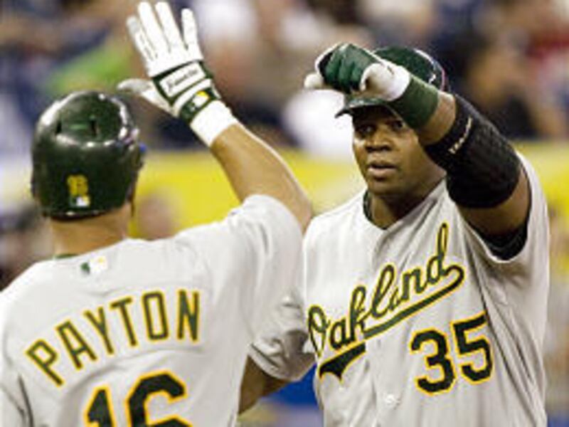 The low-budget A's had spent recent offseasons watching big-name players such as Jason Giambi, Miguel Tejada, Johnny Damon, Tim Hudson and Mark Mulder leave town — so signing Thomas and Milton Bradley without losing anyone of significance was a big deal for the organization.