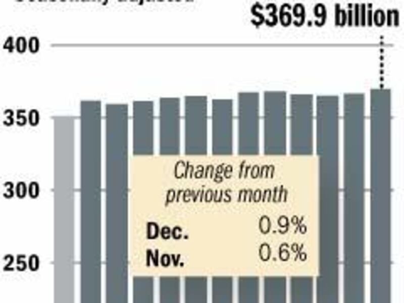 Auto sales, flat in November, rose by 0.3 percent in December, while sales at electronic and appliance stores surged by 3 percent following an even bigger 5.8 percent jump in November.