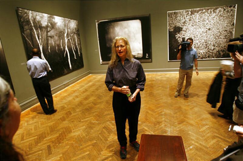 The exhibit mixes images of those sad events in Leibovitz's life with photographs of happier times, such as her travels with Sontag around the world. Leibovitz said she's proud of the work, but that it's also very personal and sometimes difficult to revisit.