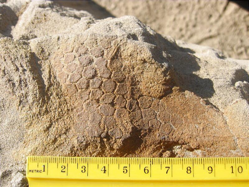 Soft parts of dead animals normally decompose rapidly. Because of chemical conditions where this animal died, fossilization — replacement of tissues by minerals — took place faster than the decomposition, leaving mineralized portions of the tissue.