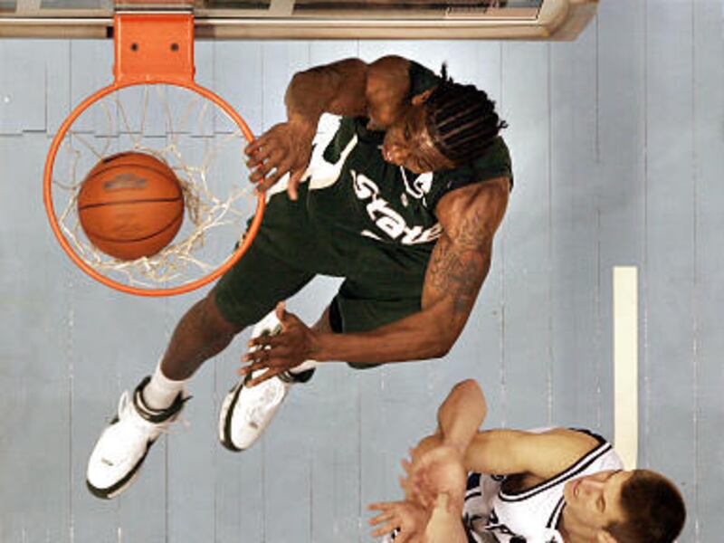 Michigan State pounded the boards relentlessly, as it is known to do, outrebounding BYU, 37-29. The Spartans collected 18 offensive rebounds, including six by Morgan. Sutton grabbed 13 rebounds.