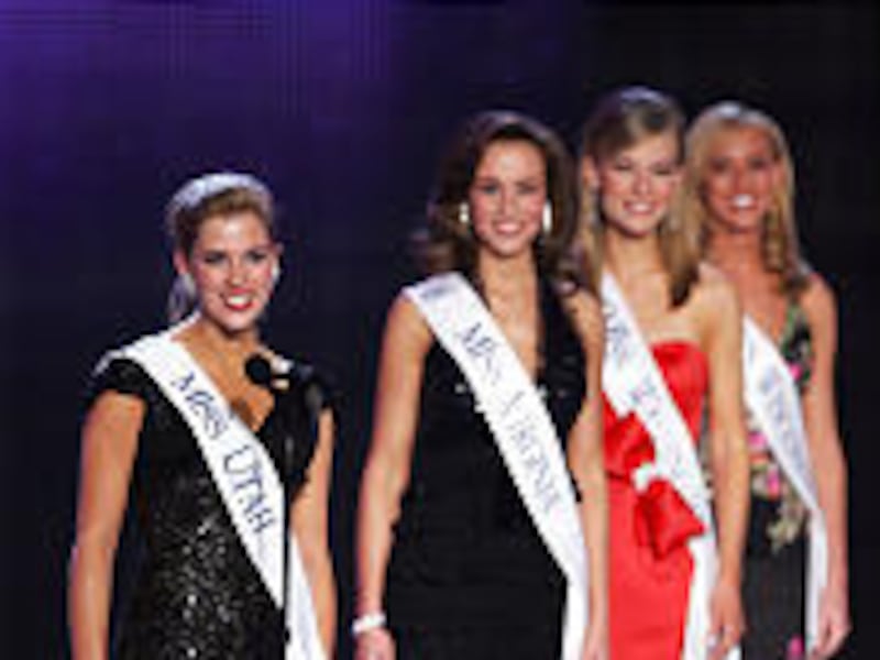 She was fine with fielding the traditional "Mormon" questions from pageant judges: What do you think of polygamy? What's your opinion on abortion? Would you vote for Mitt Romney for president?