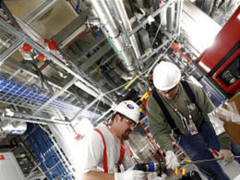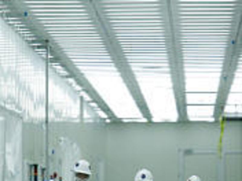 Contrasts abound. Engineers work in conference rooms or a whisper-quiet room of 400 cubicles, while other parts of the building are a cacophony of construction. Some parts of the huge buildings remain, for now, exposed concrete, gravel, dirt and steel, while other portions shine with fresh paint and carpeting. Gleaming-white hallways indicate clean-room areas, but construction workers, clad in protective gear to keep all sorts of human and construction "debris" from contaminating fabrication operations, labor nearby. Millions of dollars in equipment, thousands of workers, miles of hallways hopping with people, and yet a speck of dust is Enemy No. 1.