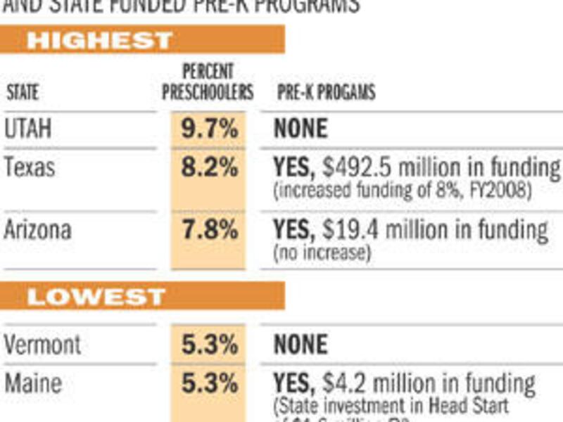 Percentage-wise, Utah has more preschoolers than any other state, according to U.S. Census Bureau estimates released today.