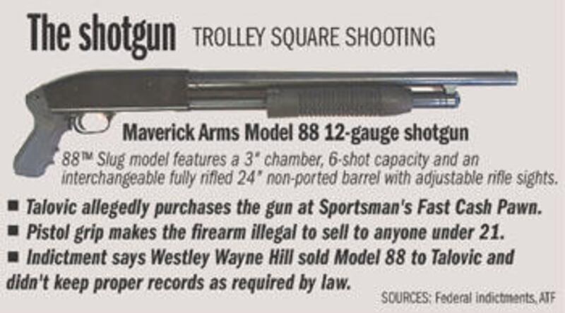 In a separate indictment, Hill is accused of selling a Maverick Arms, Model 88, 12-gauge pump action pistol grip firearm to Talovic on Nov. 13, 2006. The indictment says Talovic bought the weapon at a Sportsman's Fast Cash Pawn shop, 3930 S. Redwood Road.