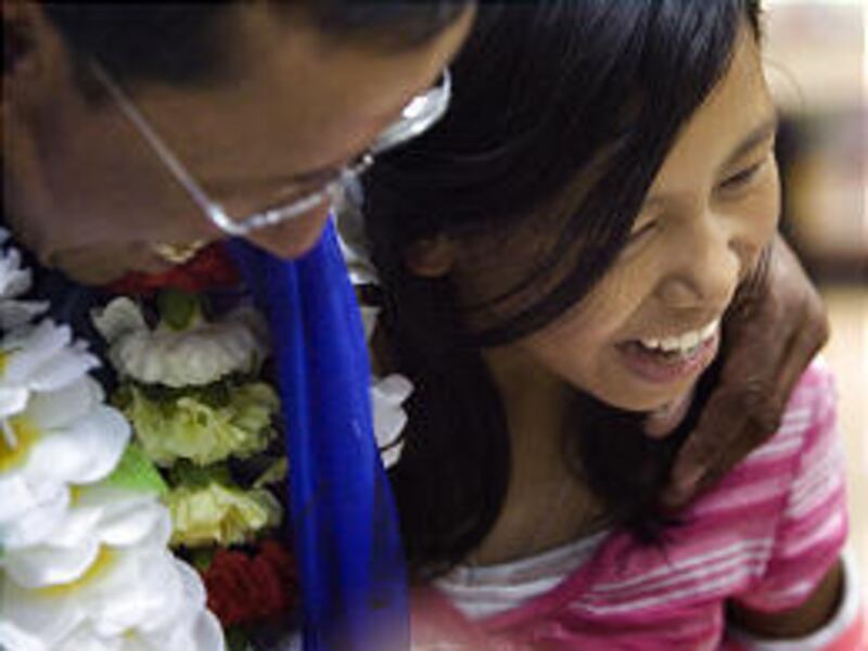 At the Salt Lake City International Airport, Apa's wife Yangjin and their three children, Tenzing, Pemba and Dawa, were relieved to have Dad back home.