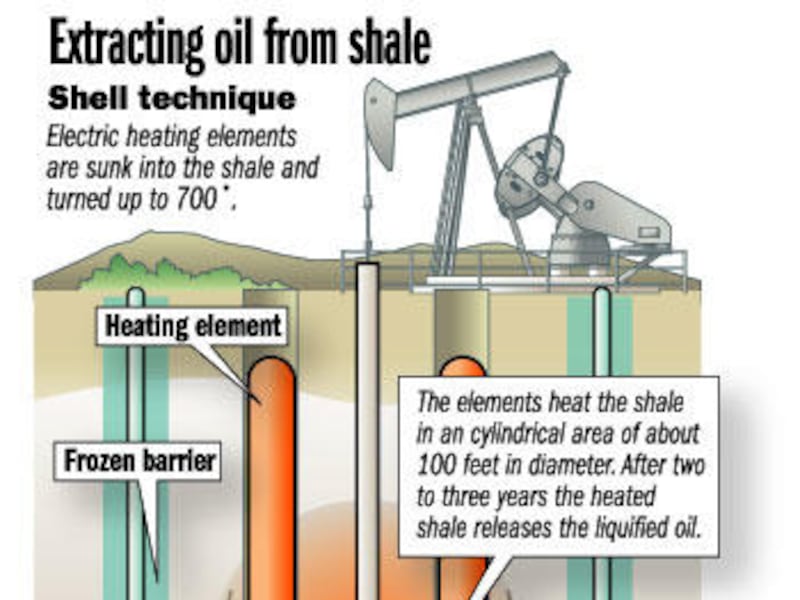 In the high desert near Rifle, Colo., Shell engineers are burying hundreds of steel rods 2,000 feet underground that will heat the shale to 700 degrees Fahrenheit, a temperature at which Teflon melts.