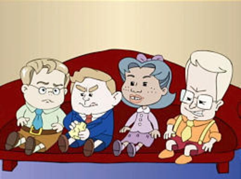 There's a bit of bipartisanship — Lil' Clinton and Lil' Hillary are also lampooned (badly) in the second segment on Wednesday. And, gee, it's a real knee-slapper when Lil' Hillary and Lil' Condi share a passionate kiss.
