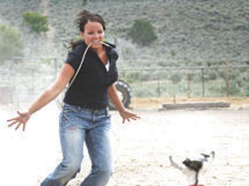 Shortly after they're dragged to the middle of the corral and staked to the ground, they're going to get thrown to the ground and tied up in about eight seconds flat — judging from Bingham's practice runs for her event in the upcoming national rodeo championships.