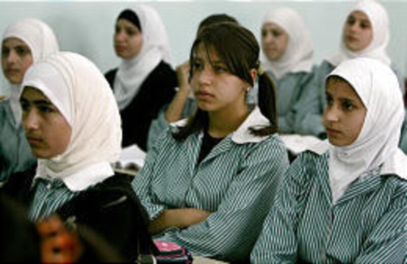 In some cases, girls are pushed by pro-Hamas teachers to pray and wear head scarves, although no law requires it. Hala Barghouti, 11, from the village of Deir Yassin, said she is transferring from a public school to a private Christian one next year to escape the nagging.