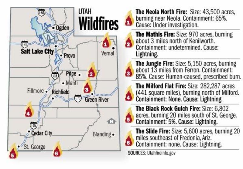 "That's not enough," said Jim Springer, spokesman for the Division of Forestry, Fire and State Lands. "There are other (firefighters) on order. A lot of the resources with the fire are stretched thin. For instance, the Neola fire has something like 850 firefighters on it. It's a matter of finding enough resources."