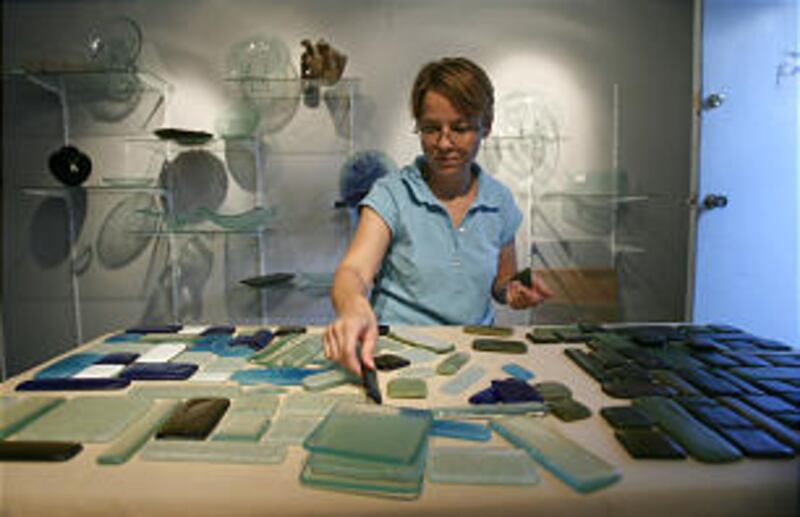 Rusho describes herself as a "recycled glass artist," who not only works with recycled glass but has also recycled herself from burned-out business person into an artist.