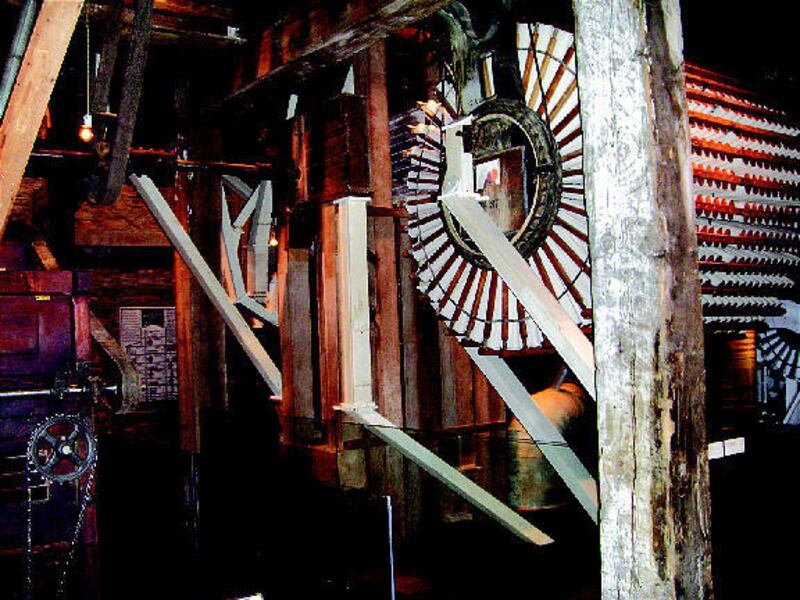 The museum features exhibits on wheat farming and milling machinery. The main attraction is the Flour Tower, a giant freight elevator with stadium seating. It travels up and down eight floors of multimedia presentations that show the milling process with assembly lines, conveyor belts and so on.