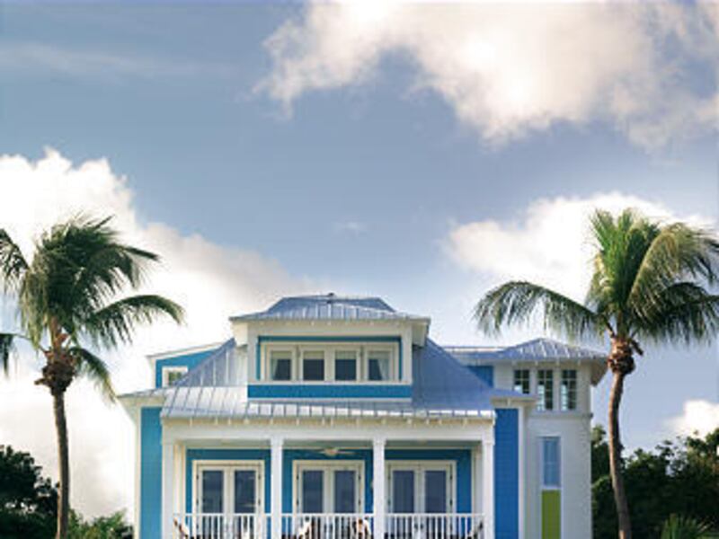 Architect Rick Wissmach and local builder Juan Dellanos sought fresh but indigenous designs with some of the charming features of Old Florida, among them the front-balconied houses of Key West. Features that Wissmach chose include upper decks for indoor-outdoor living, hideaways like a fishing room and an outdoor cascade shower for rinsing off after time on or in the water. Landscape architect Richard P. Brown graced the property with tall coconut palms and colorful tropical shrubbery too delicate for mainland temperatures.