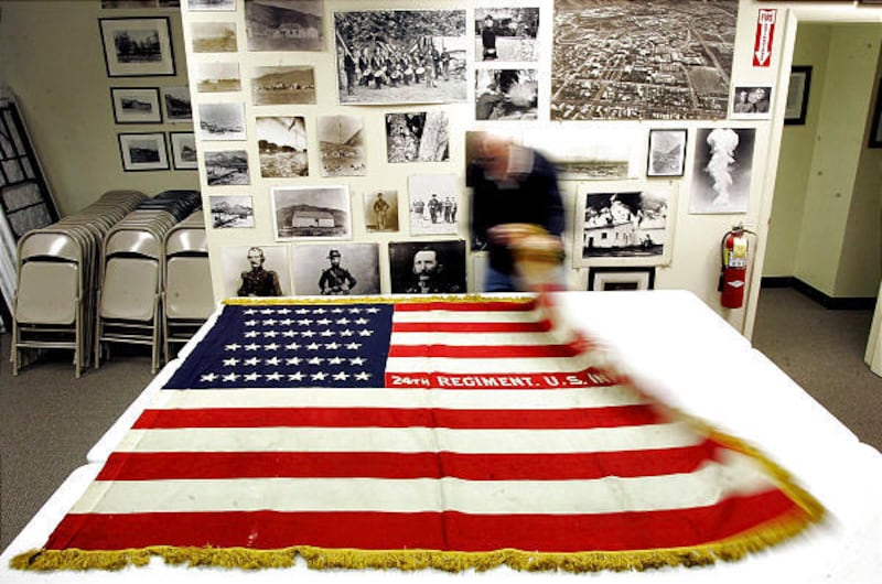 Voyles hopes the black community will pitch in and help pay for the preservation. If the flag could be sold it would fetch an estimated $50,000 to $100,000, but its real value to the museum is priceless, he said. The flag originally belong to Maj. Jay Milton Thompson, of the 24th Infantry, and his daughter donated it to Fort Douglas, where it found its way into the museum.