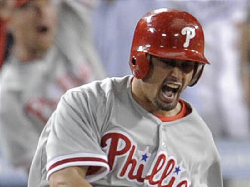 LOS ANGELES — Shane Victorino and the Philadelphia Phillies struck back with long balls rather than beanballs to move within one win of the World Series.