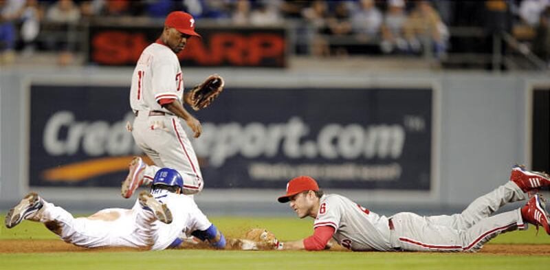 Furcal bunted for a base hit on Blanton's first pitch in the bottom half, popping the ball over the head of charging third baseman Greg Dobbs. Furcal would later score when Loney doubled on an 0-2 pitch.