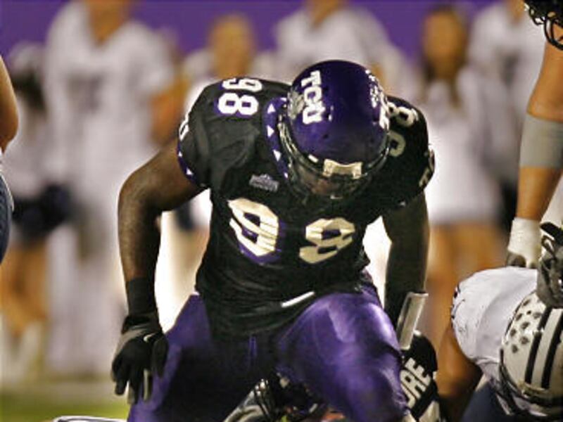 But the Horned Frogs didn't have to wait long for their first score anyway, as two plays later, Hall was blindsided by defensive lineman Jerry Hughes and fumbled the ball away to Matt Panfil. It was the first of three first-half sacks by Hughes.