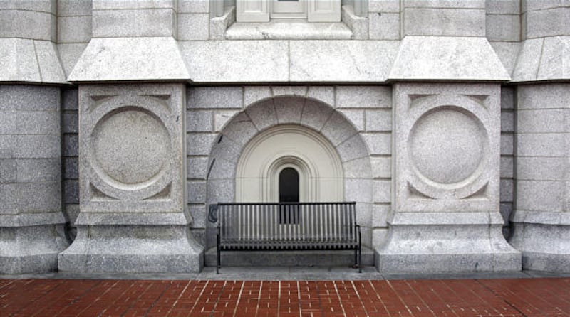 For perhaps its first few decades, the Salt Lake Temple used to have statues of Joseph and Hyrum Smith, one each in niches at the top of the two eastern stairways. These bronze statues were later removed and placed elsewhere on the temple block, according to Elder Talmage in "The House of the Lord." The empty spaces for these two statues remain and are popular photography spots for wedding parties today.