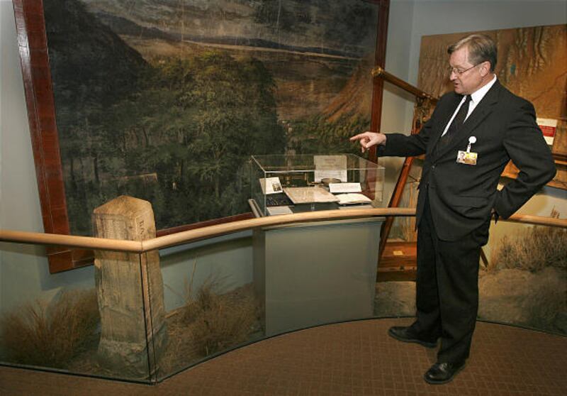 Concerns about the deterioration of the marker arose again in the 1950s, but it wasn't until Aug. 17, 1989, that something was done. A sandstone replica was carved by Johann "Hans" Huettlinger, a master stonecutter, and carefully placed in the same location.
