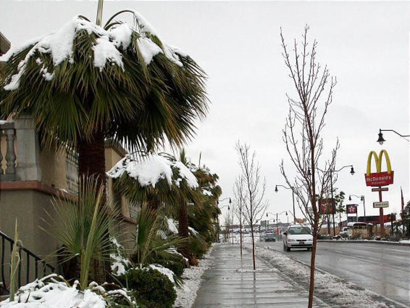 ST. GEORGE — The red rocks and palm trees so familiar to Utah's Dixie are blanketed with white — something unfamiliar to the folks who live here.