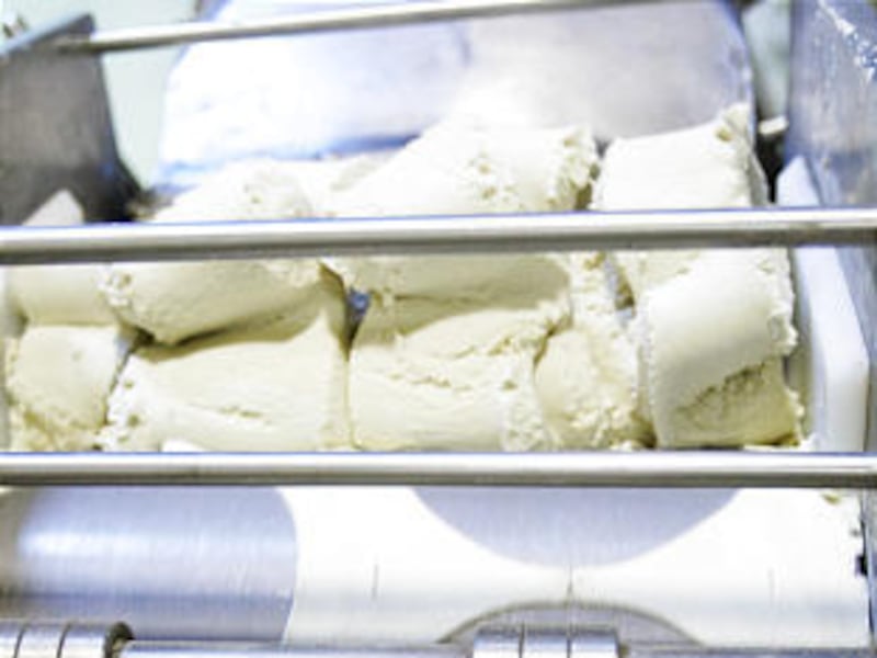 Toscano explained that the press contains all the components of tortilla-making on a mass-production scale: It mixes dough, then raises the dough in a proofer, bakes the clumps of dough to become the flat round shape of tortillas, runs the tortillas through a metal detector to ensure no slivers of machinery metal have gotten into them, exposes the tortillas to UV light to slow growth of any mold, then packages them in bags.