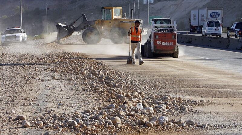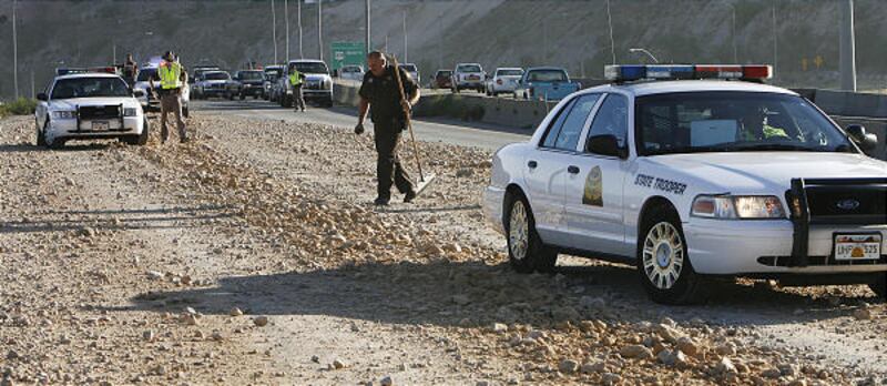 Crews begin cleaning up rocks and gravel that spilled onto I-15 when a truck crashed at about 2300 North in North Salt Lake Friday morning. "There was an electrical malfunction (in the truck) and that's what caused it to open and spill its load," Utah Highway Patrol trooper Cameron Roden said. The freeway's southbound lanes were closed for several hours and a trailing car lost control and hit the barrier. The driver wasn't seriously hurt. UHP said the truck driver was cited for having an overweight load.