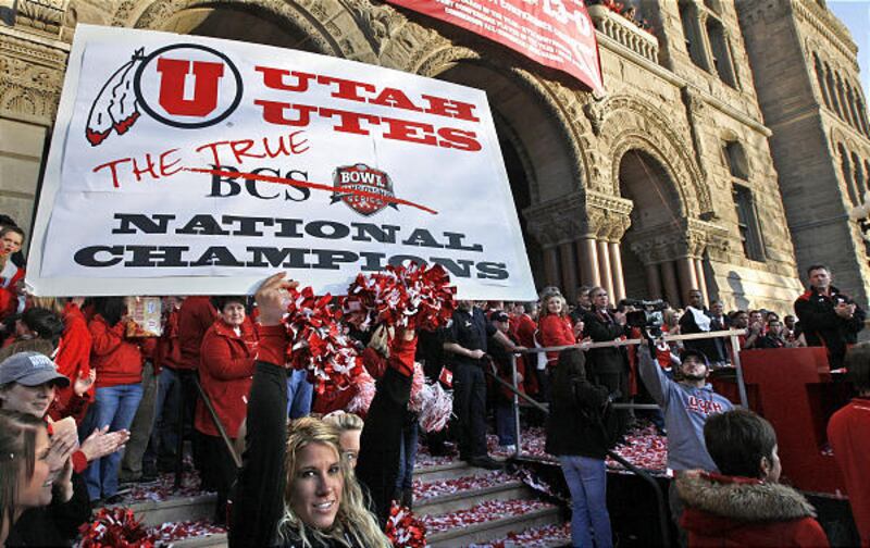 The celebration was Utah's first in Salt Lake City since winning the Sugar Bowl in New Orleans on Jan.