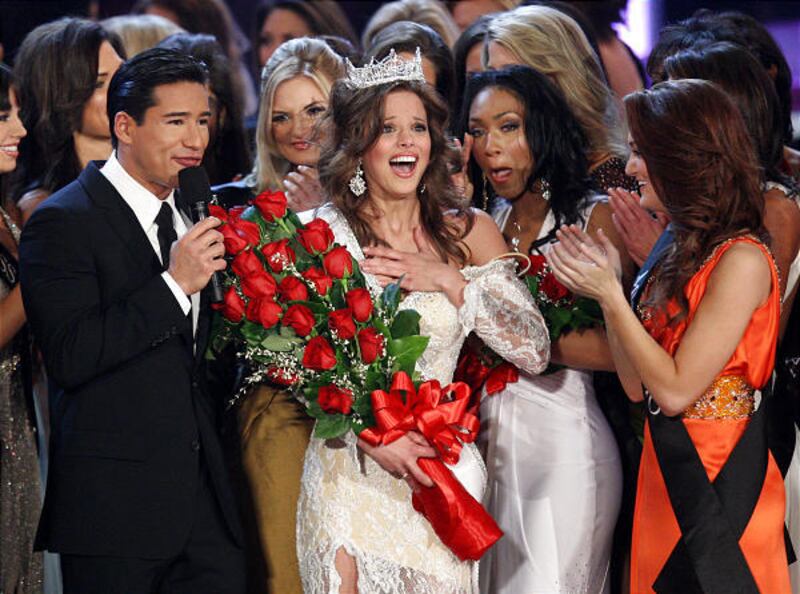The Seymour native also strutted onstage in a black bikini and an off-the-shoulder, white lace evening gown. During the interview portion of the competition she decried the use of performance-enhancing drugs among professional athletes and discussed the definition of glamour.