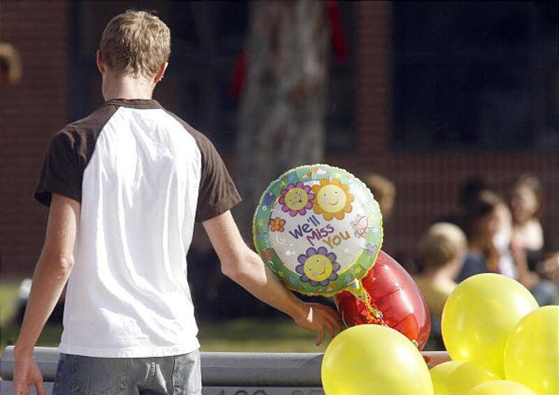 Students dressed in their Sunday best and also donned flip-flops because Christensen loved the casual footwear. By the end of the day, a bench at the front of the school was covered with balloons, flowers and candles.
