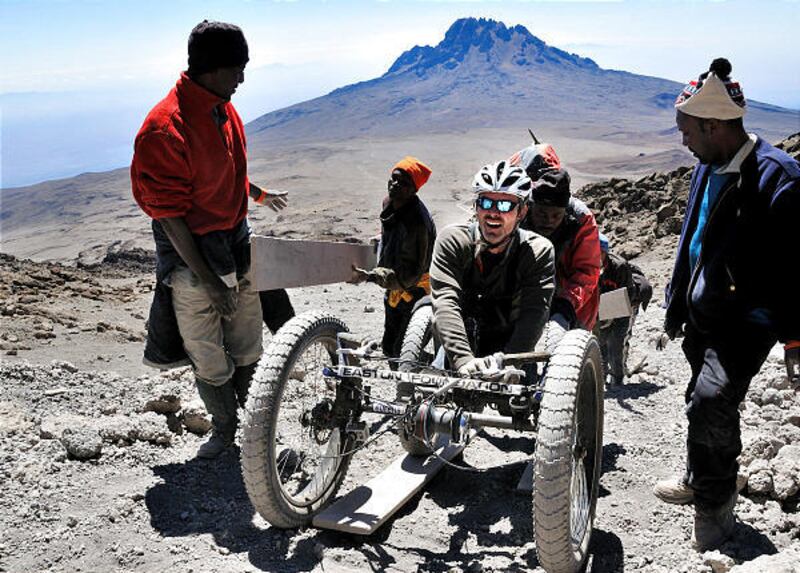 As his support crew was making itself busy pitching tents, preparing dinner and setting up camp on the side of Mount Kilimanjaro, Chris Waddell was grinding away on his custom-made, four-wheel mountain bike just a few meters down the slope.