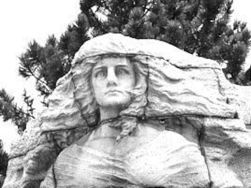 Sculpted by Gilbert Riswold, the 29-foot monument is composed of 4,000 cubic feet of rose pink granite and features 33 figures carved in the granite and three figures developed on a larger scale of Battalion Man, Vanishing Race and Columbia. The model for the Columbia figure was Annie Beatrice Jones Lloyd, a descendant of two Mormon Battalion members.