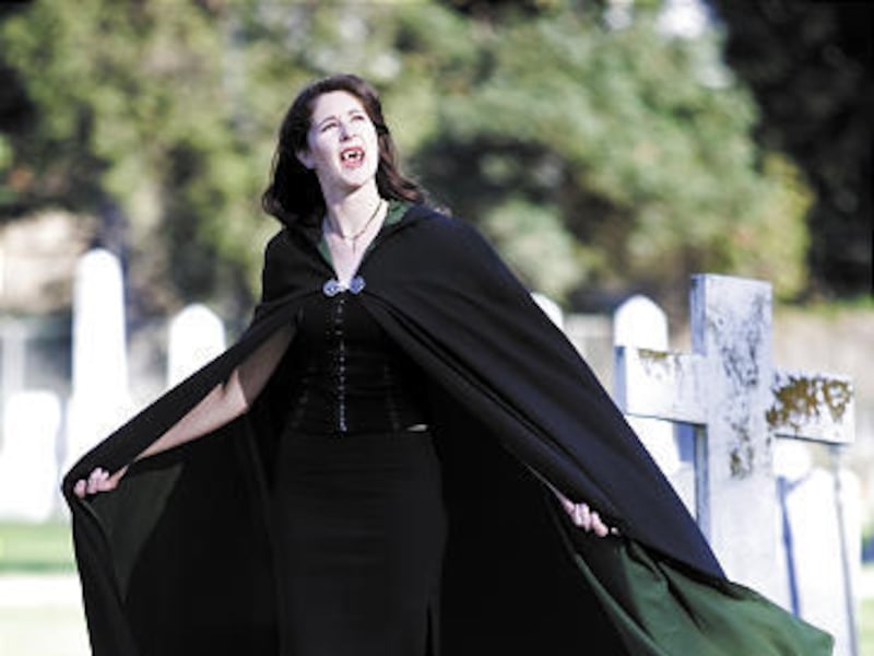 Our bloodsucking beauty wore a black, corset-style top, long black skirt and knee-length black boots. However, the possibilities for va-va-voom vamps are practically endless.