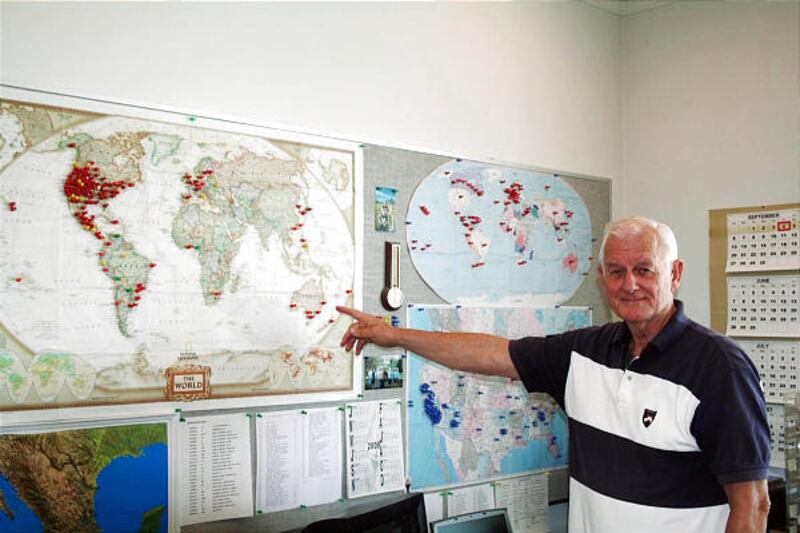 Hansen's office is plastered with huge world maps stuck with multi-colored pins, representing temples he has visited, temples he has not visited and temples that have been announced but have yet to open. The open temples he has yet to visit are in Bolivia, Paraguay and Caracas, Venezuela. He has not been to the Nigerian Temple, which was recently closed.
