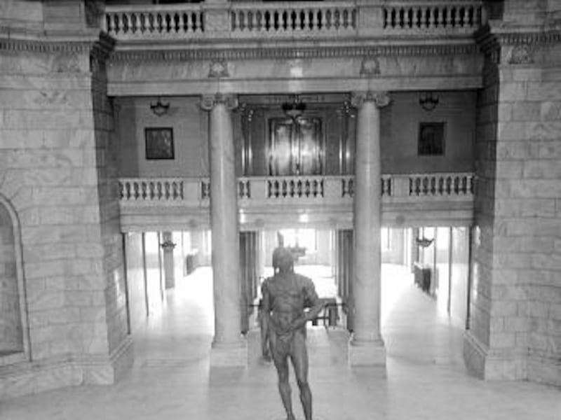The following year, Dallin presented the original plaster cast to his home state, where it was placed indoors because, as Horne wrote, "One month's rigor of winter weather would crumble it back into clay, but sheltered under the great dome of the capitol it will last indefinitely."