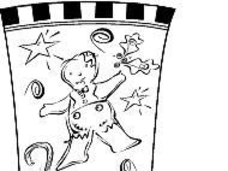 Each player needs a large sheet of paper and a pencil. Each table has a die. The goal is to be the first to finish a picture of a house. You draw as follows: When you shake a 1, you draw a house. When you shake a 2, you draw a roof. When you shake a 3, you draw a door. When you shake a 4, you draw one window. Your house must have two windows. When you shake a 5, you draw a Christmas tree in one window. And your house is done. But if you shake a 6, your house burns down, and you must start over.
