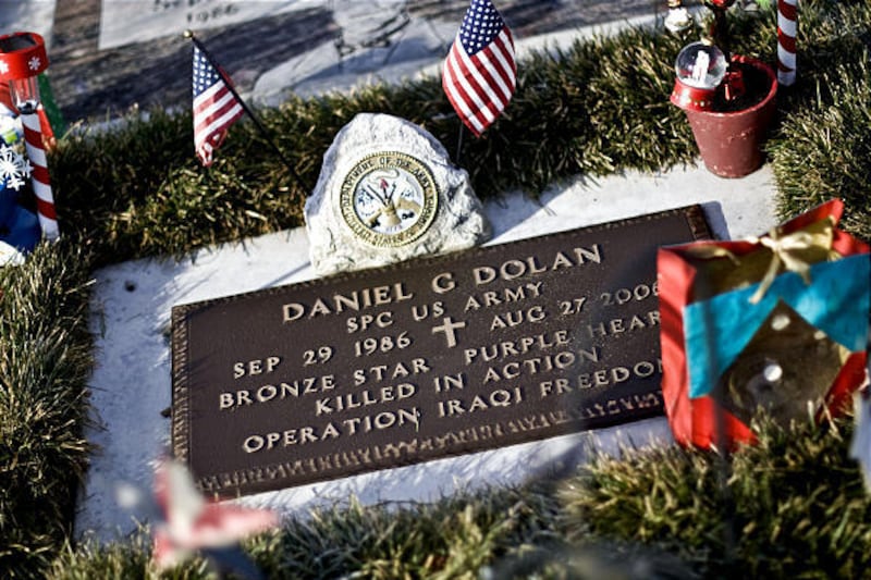 Daniel Dolan, also an Army soldier, died in 2006 in Iraq. His Stryker combat vehicle hit an improvised explosive device or IED, an acronym that has become an aching part of American lingo.