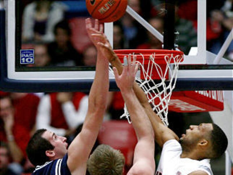 Actually, the Wildcats didn't go down without a fight, even if it was a short-lived effort. With an 8-0 run to start the second half, with three quick inside hoops by forward Derrick Williams, Arizona cut BYU's lead down to seven at 51-44.