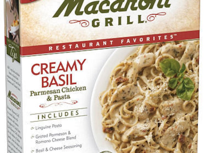 Bonnie: The casual Italian family restaurant Macaroni Grill has brought some of its dishes to supermarket shelves in the form of meal kits. To make them, just add a pound of chicken, some butter or oil and, in some cases, milk. If you want vegetables in your meal, you'll need to purchase them too.