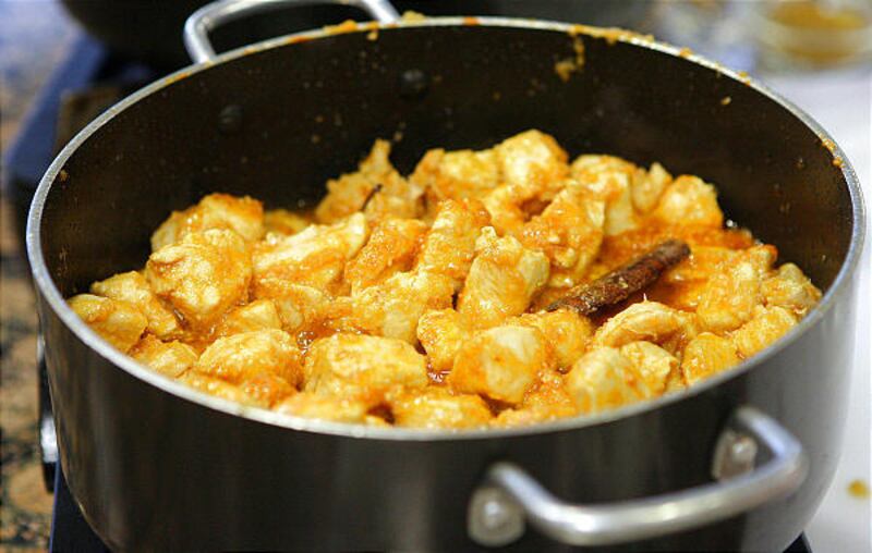 When making a chicken curry, add the meat after you can smell the spices. The pot should be on high heat so that the heat will seal in the juices.