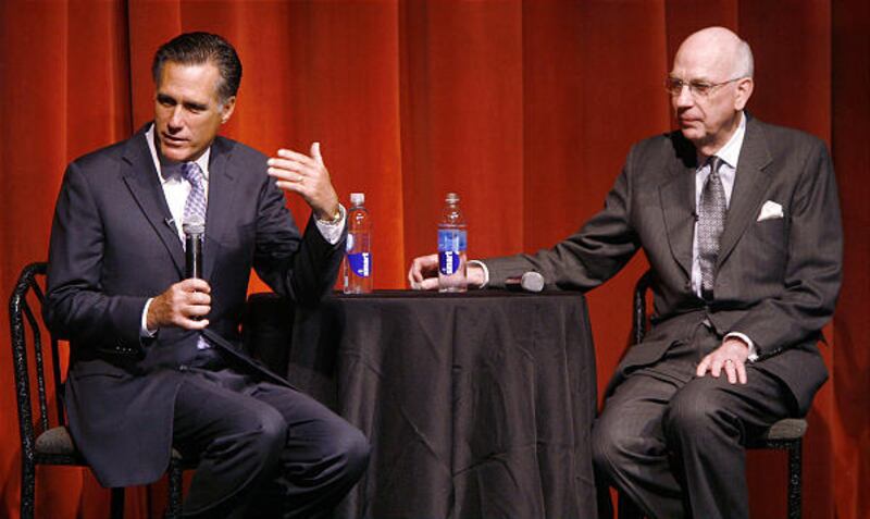 Just minutes earlier, only a few dozen people had stood up when Bennett took the stage for what was billed as "A Conversation About the Future" between the Republican senator and Romney, the former leader of the Olympics in Salt Lake City and a GOP candidate for president in 2008.